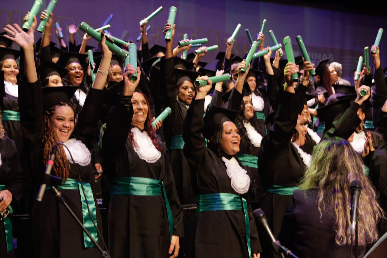 A cerimônia reuniu 126 profissionais, todas mulheres, no Centro da capital mineira, marcando mais uma conquista significativa dentro do Trilhas de Futuro, programa do Governo de Minas, executado por meio da Secretaria de Estado de Educação de Minas Gerais (SEE/MG), que se destaca como um dos maiores programas de capacitação profissional do estado.